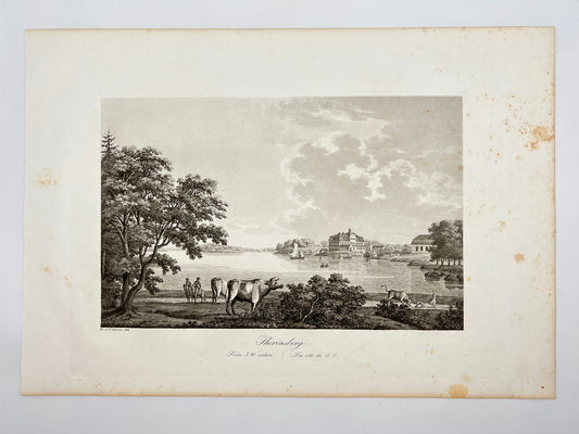 Antique Engraving - Ulrik Thersner - View of Sturehov Manor in Sweden - E3