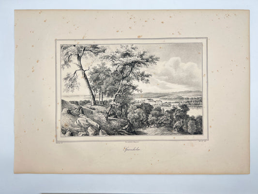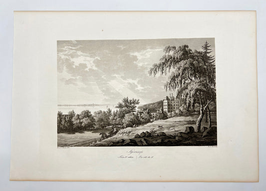 Antique Engraving - Ulrik Thersner - View of Smalanda Park in Sweden - E3