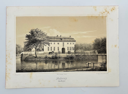 Original Antique Print - Ferdinand Richardt - Skabersjö from Wester - F3