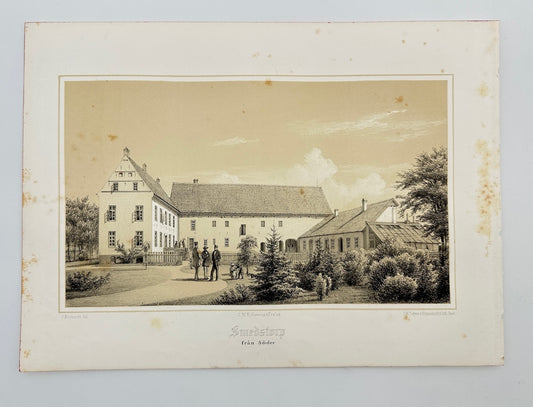 Original Antique Print - Ferdinand Richardt - Smedstorp from the South - F3