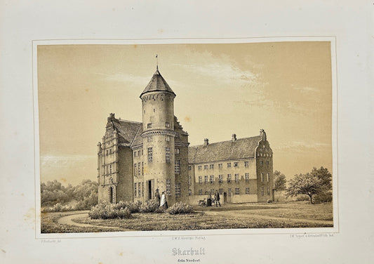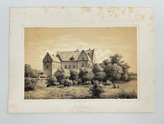 Original Antique Print - Ferdinand Richardt - Rnutstorp from Wester - F3