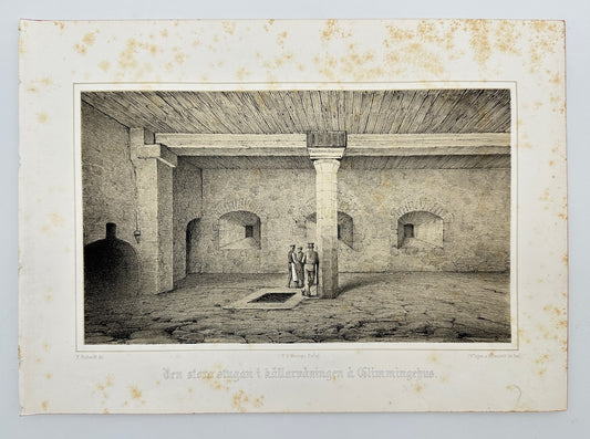 Antique Print - Ferdinand - The large cabin in the basement of Glimmingebus - F3