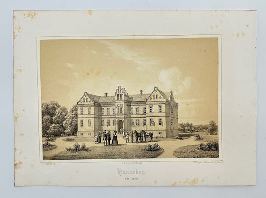 Antique Print - Richardt Ferdinand - Wanas. from the south-west - Sweden - F3