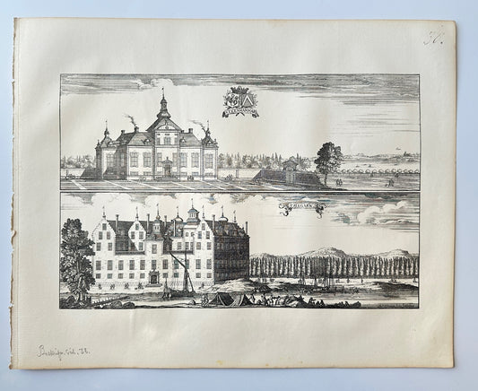 Antique Topographical - Erik Dahlberg - View of Herningsholm Castle - E1