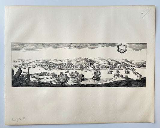 Antique Topographical - Erik Dahlberg - View of Harnosand - Sweden - E1