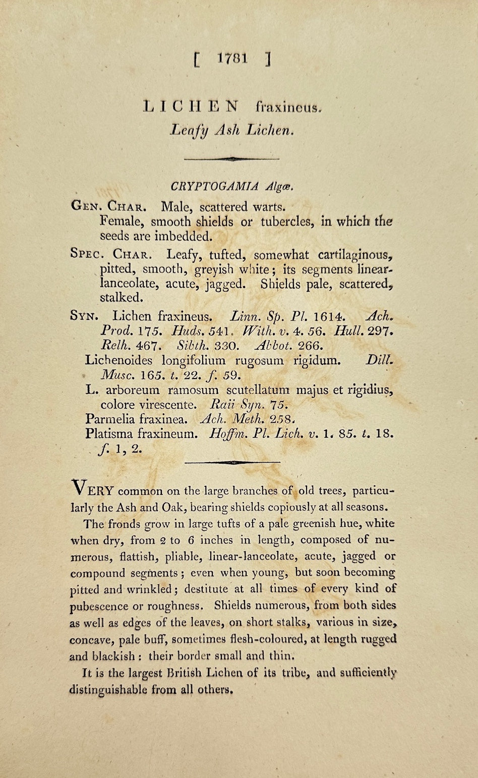 Antique Botanical Print - James Sowerby - Lichen Fraxineus - Ash Lichen - F1