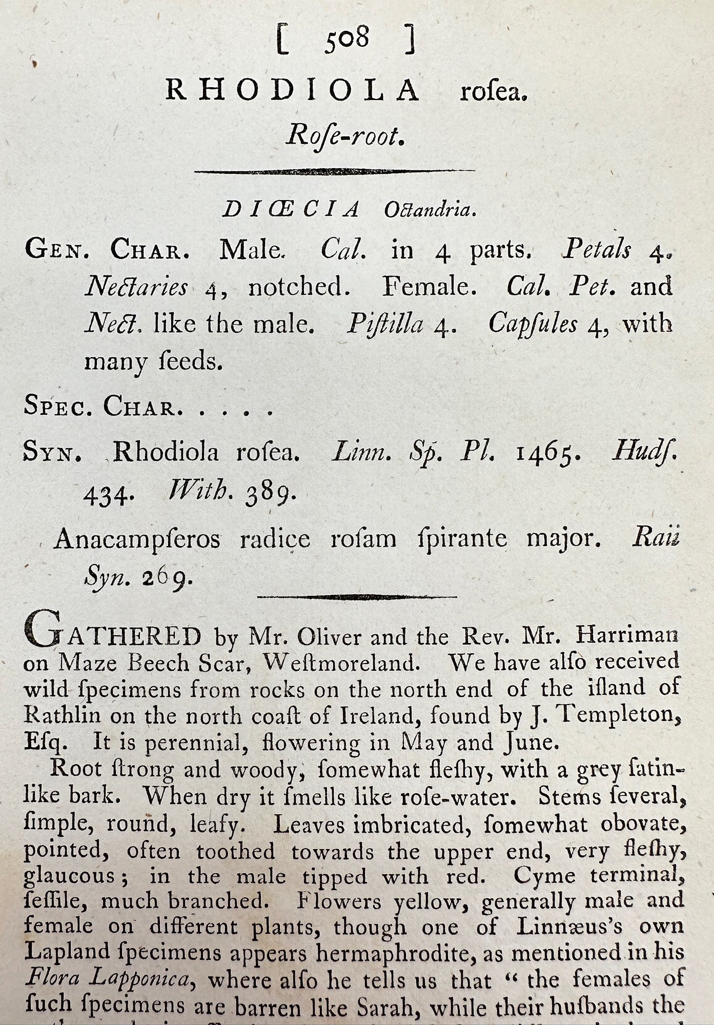 Antique Botanical Print - James Sowerby - Rhodiola Rofea - Rofe-root - F1