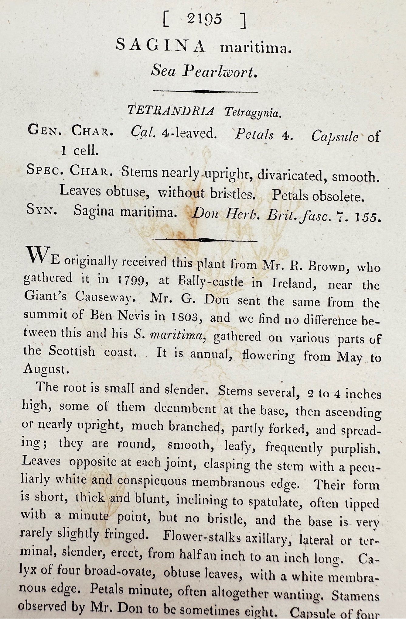 Antique Botanical Print - James Sowerby - Sagina Maritima - Sea Pearlwort - F1