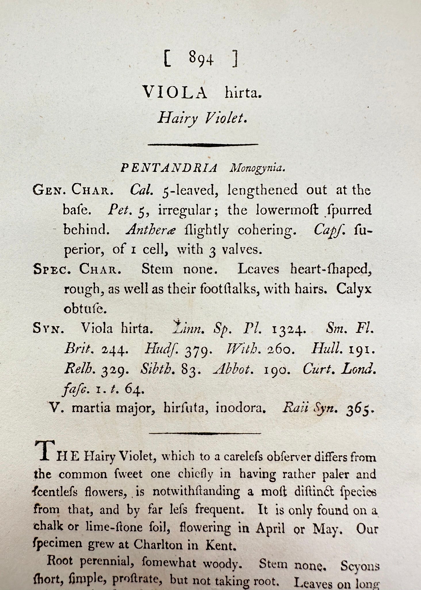 Antique Botanical Print - James Sowerby - Viola Hirta - Hairy Violet - F1