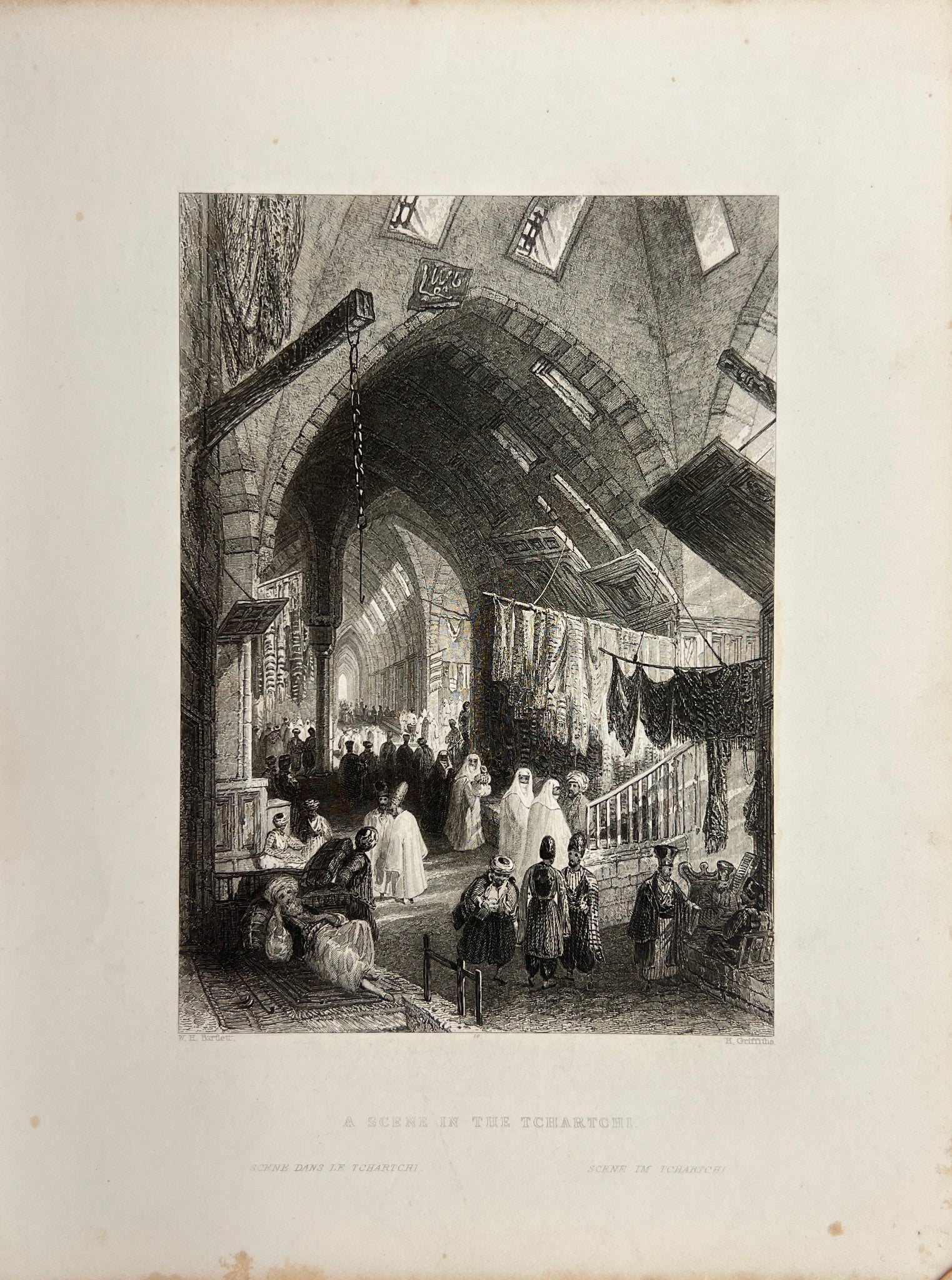Antique Engraving - Carl Joseph Meyer - View of Grand Bazaar - Türkiye - E5