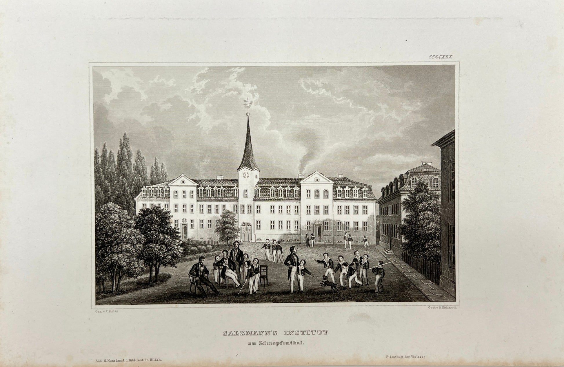 Antique Engraving - Karl Reiss - Salzmann's Institute in Schnepfenthal - C2