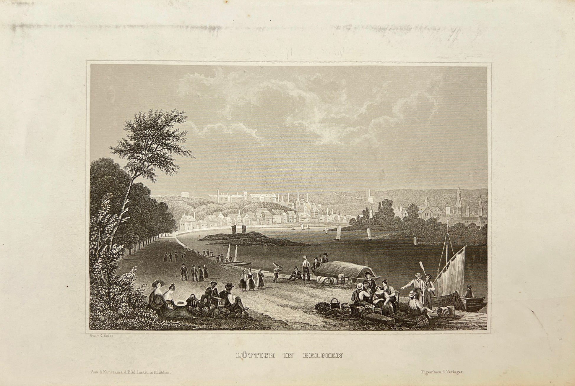 Antique Engraving - Karl Reiss - View of Liège in Belgium - Germany - E5