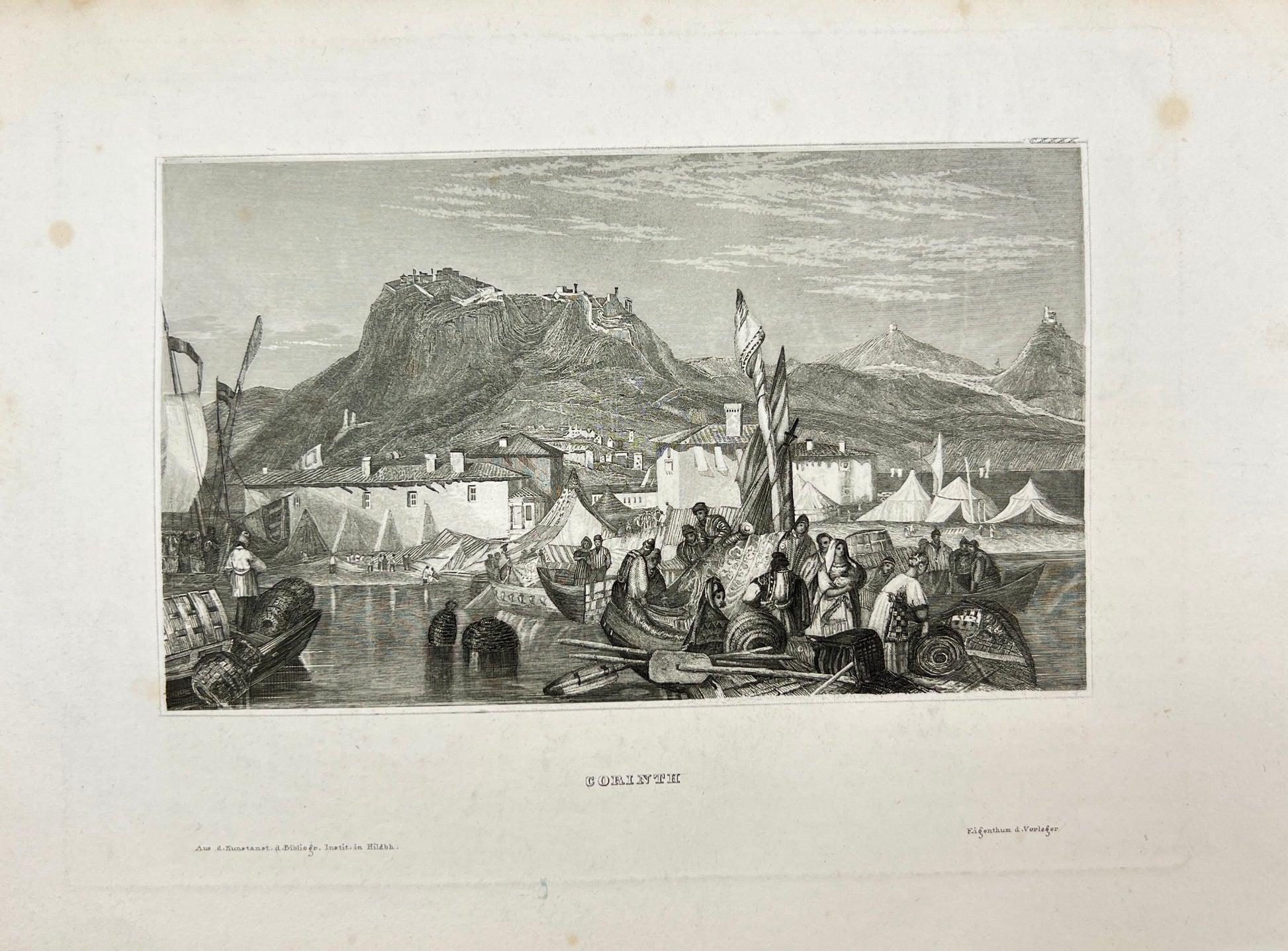 Antique Engraving - Karl Reiss - View of the city of Corinth in Greece - E5