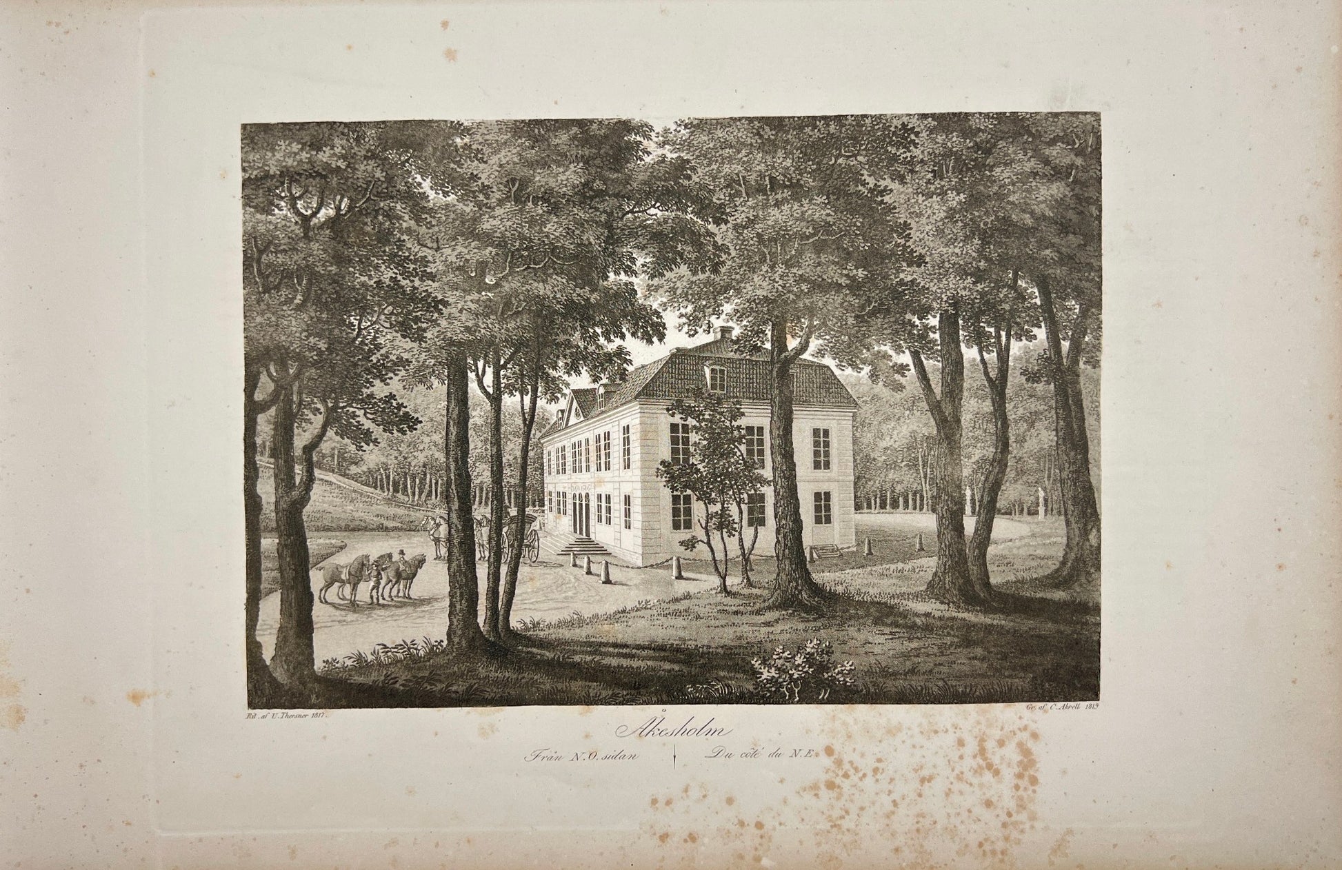 Antique Engraving - Ulrik Thersner - View of Ovesholm Castle in Sweden - E3