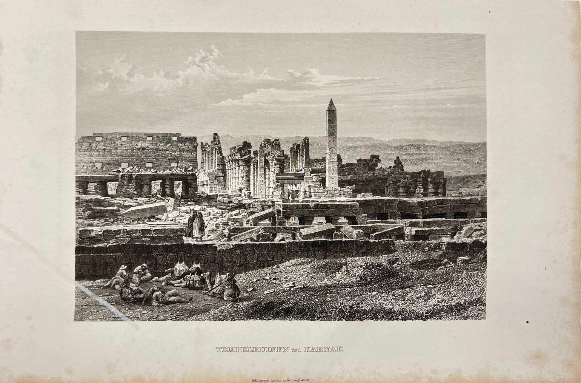 Antique Engraving - Wilhelm Hammerschmidt - View of Temple Ruins at Karnak - E5