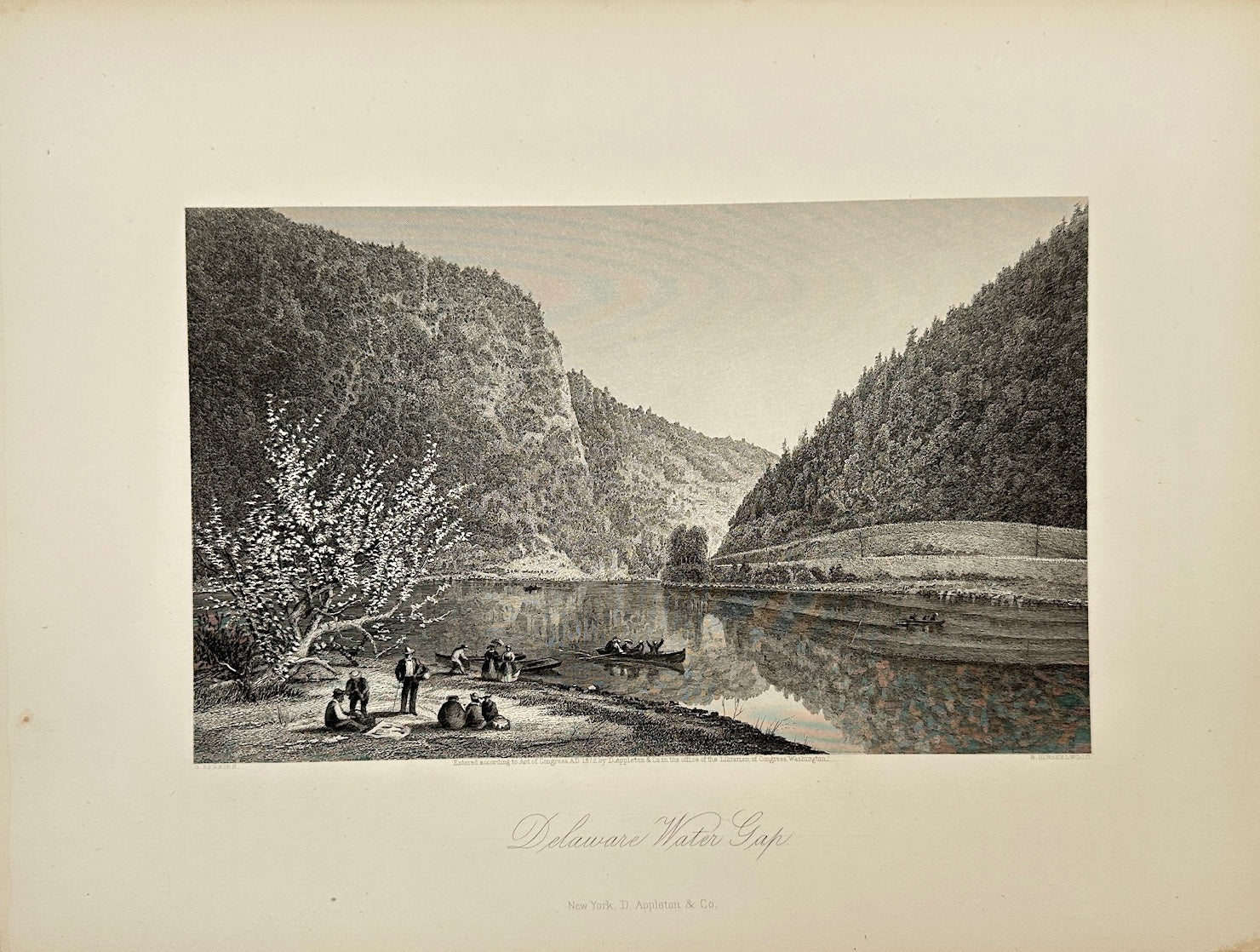 Antique Engraving - William Cullen Bryant - View of Delaware Watem Gup - F5