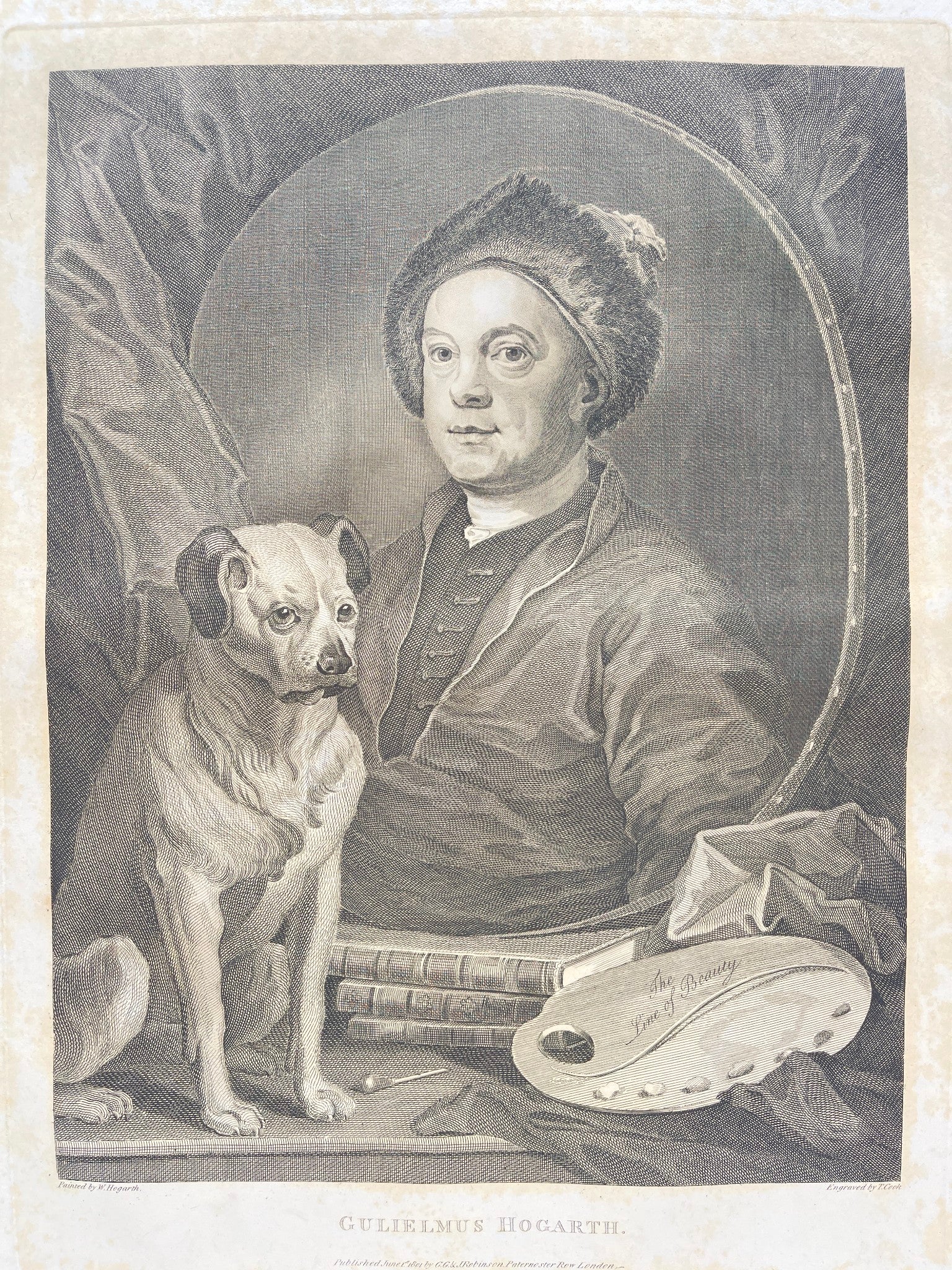 Antique Engraving - William Hogarth - Portrait of Gulirlmus Hogarth - E5