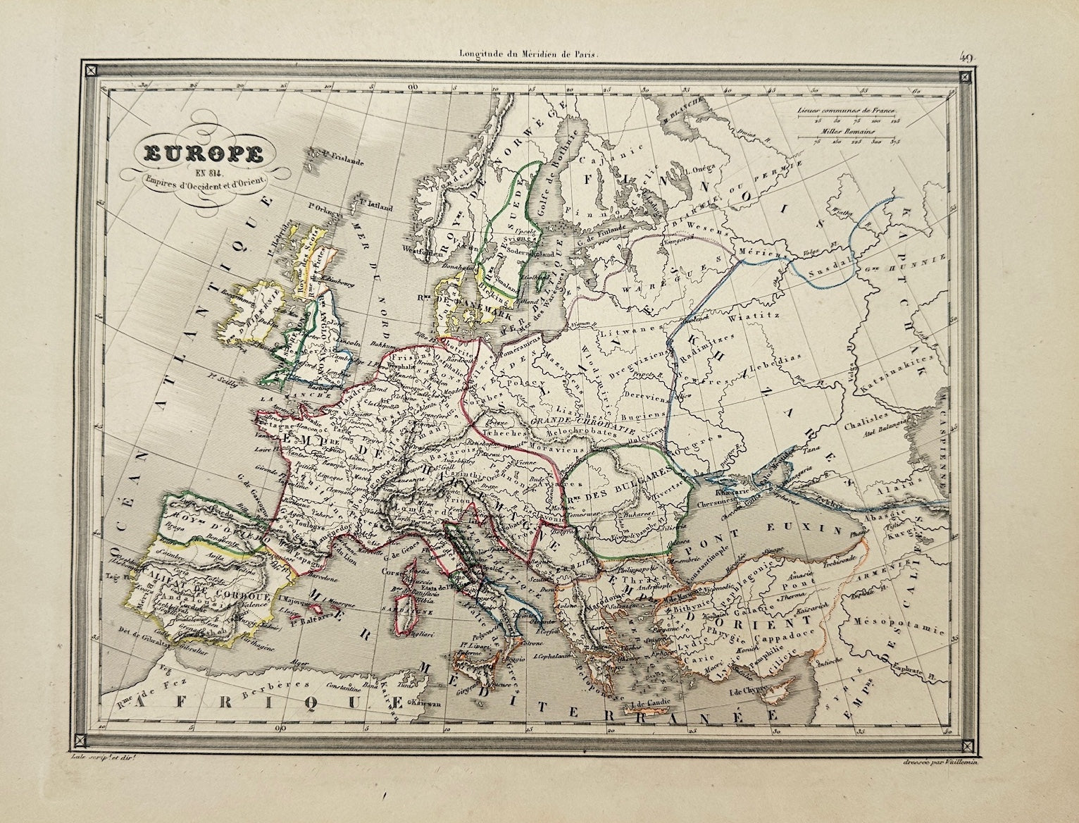 Antique Map - Felix Delamarche - Europe in 814 Western and Eastern Empires - G3