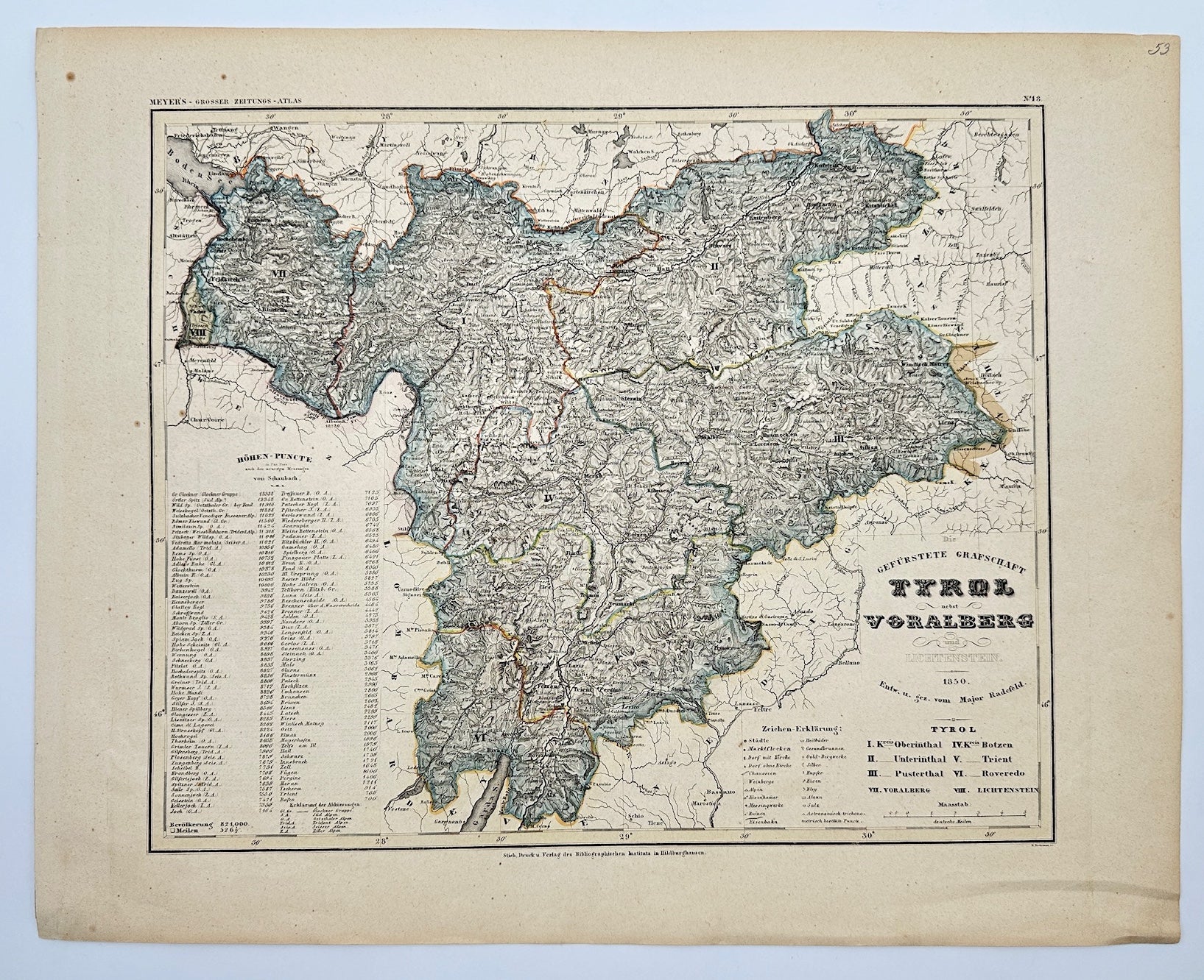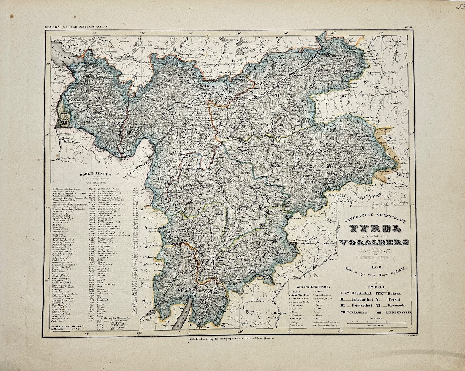Antique Map - John Ravenstein - Tyrol Vorarlberg - Meyers Hand-Atlas - G3