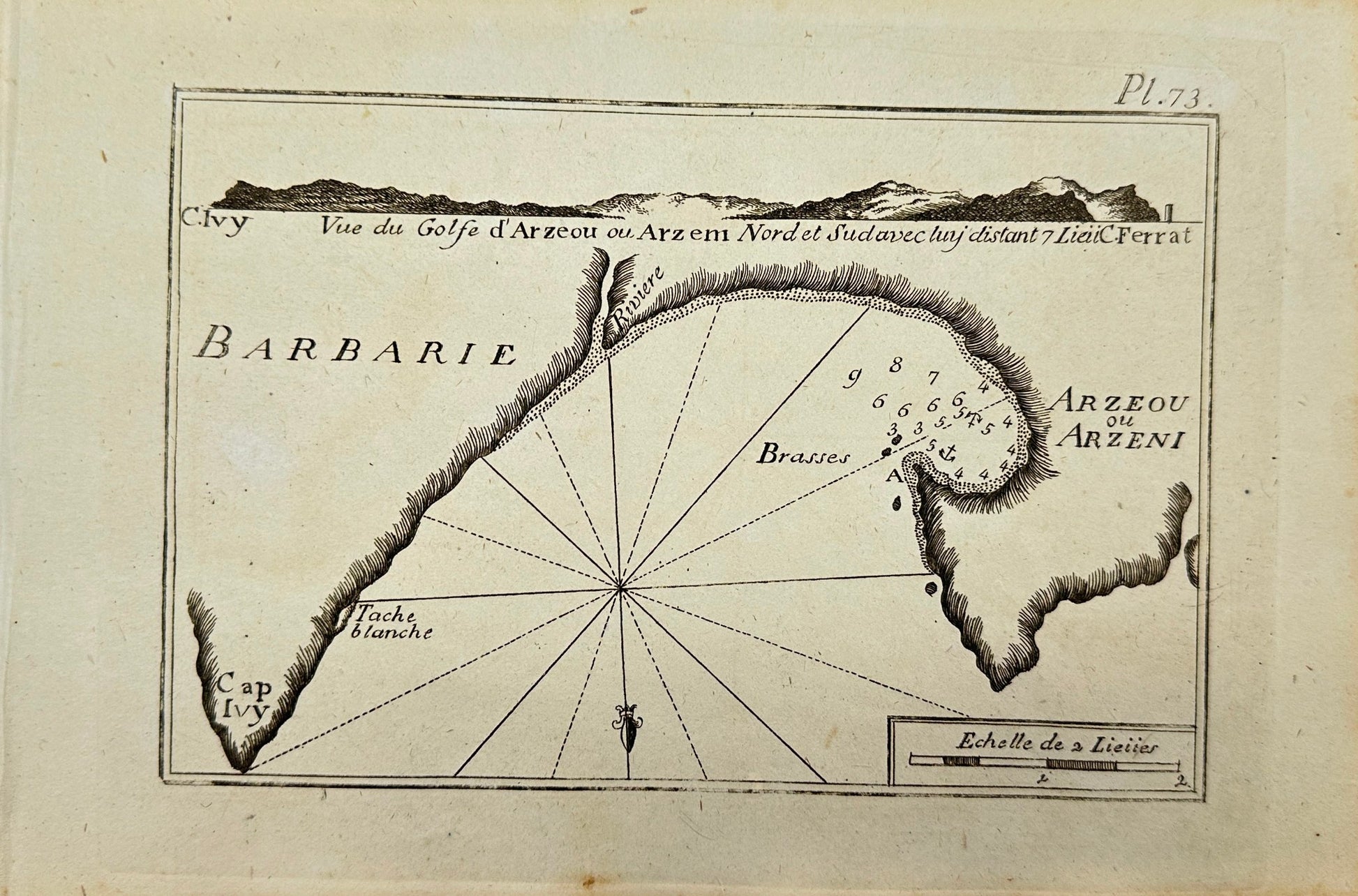 A small engraved map showing the bay and anchorages on the Barbary coast.