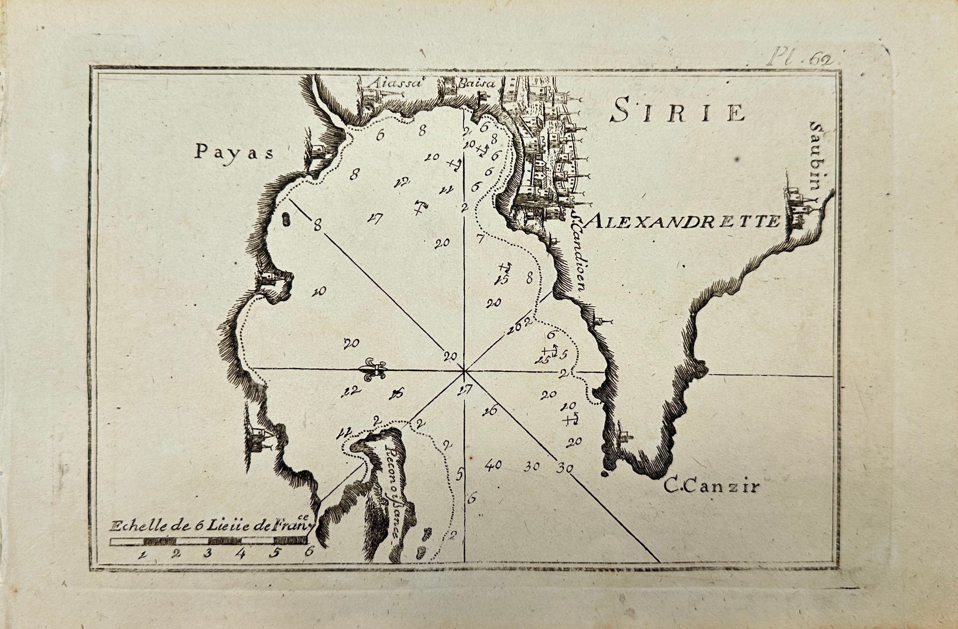 An old 18th century map produced in France by the famous engraver and cartographer Joseph Roux. Displays the Ottoman Empire, Middle East, Syria, Iskenderun, Alexandretta