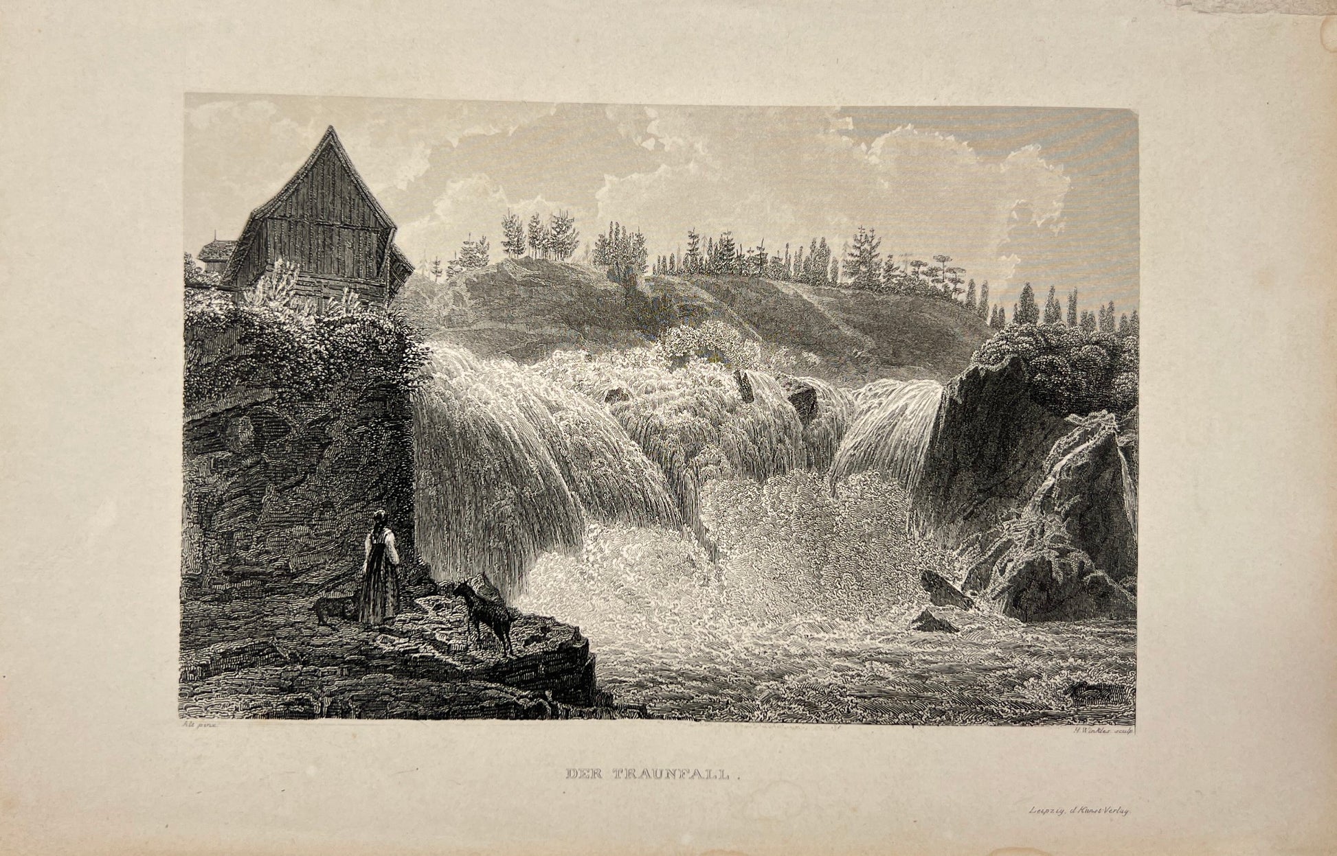 Antique Print - Carl Joseph Meyer - Waterfall on the Traun River in Austria - E5