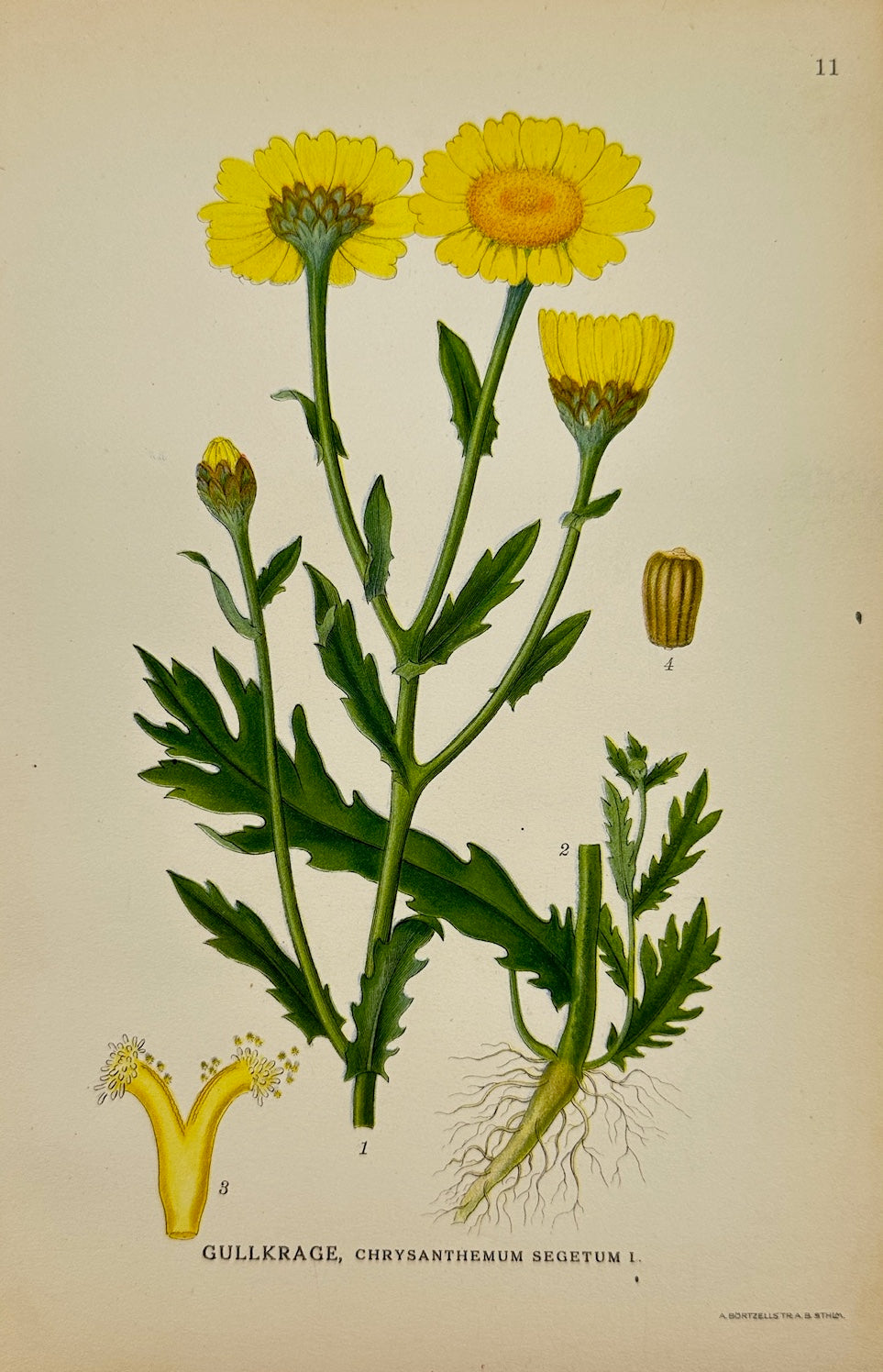 Antique Print - Carl Lindman - Corn Marigold - Chrysanthemum Segetum - F4