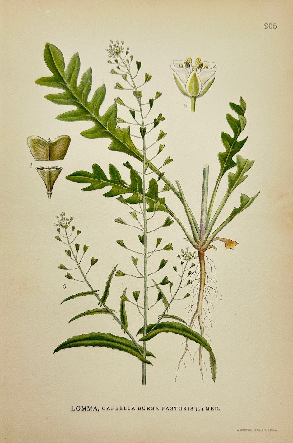 Antique Print - Carl Lindman - Shepherd's Purse - Capsella Bursa-pastoris - F4