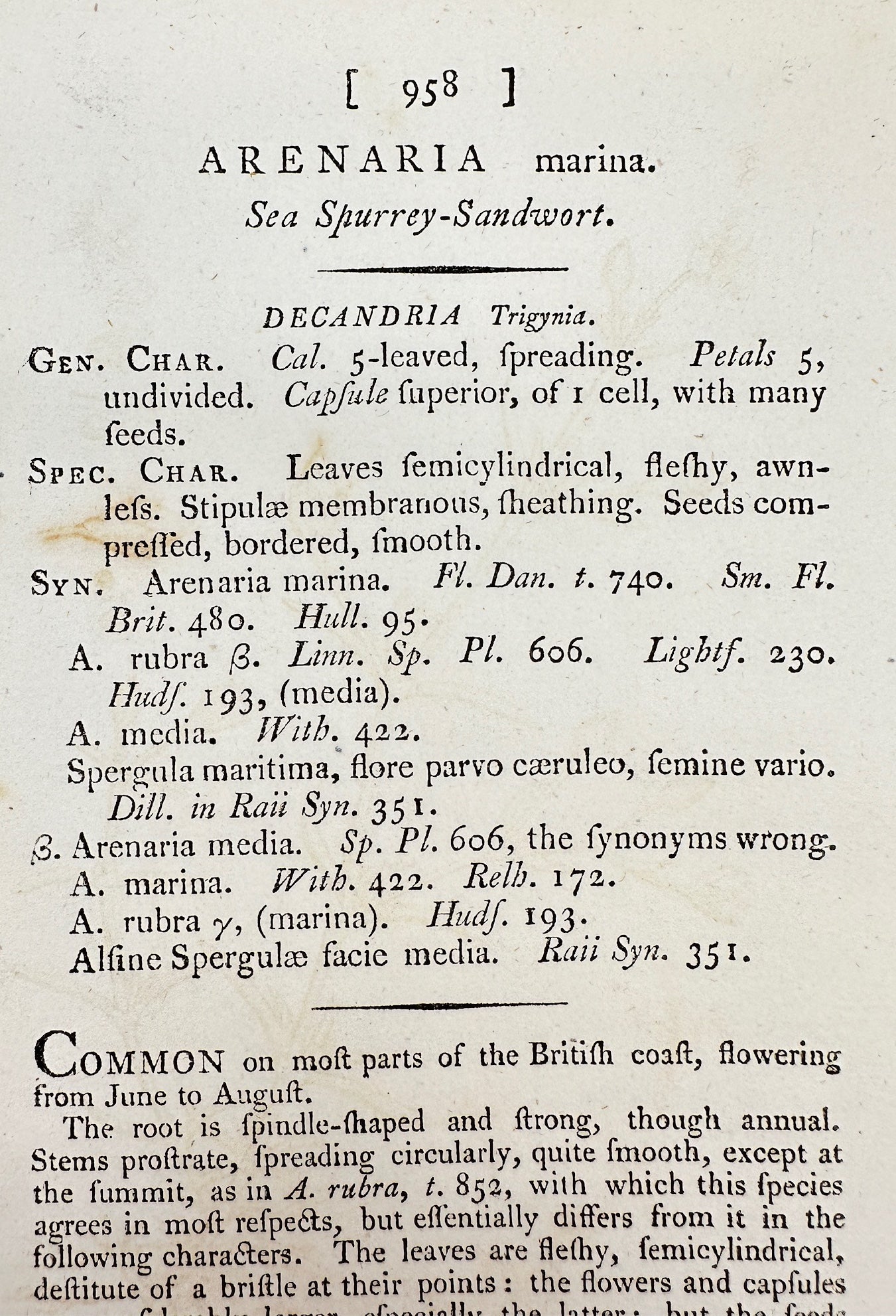 Antique Print - James Sowerby - Arenaria Marina - Sea Spurrey-Sandwort - F1