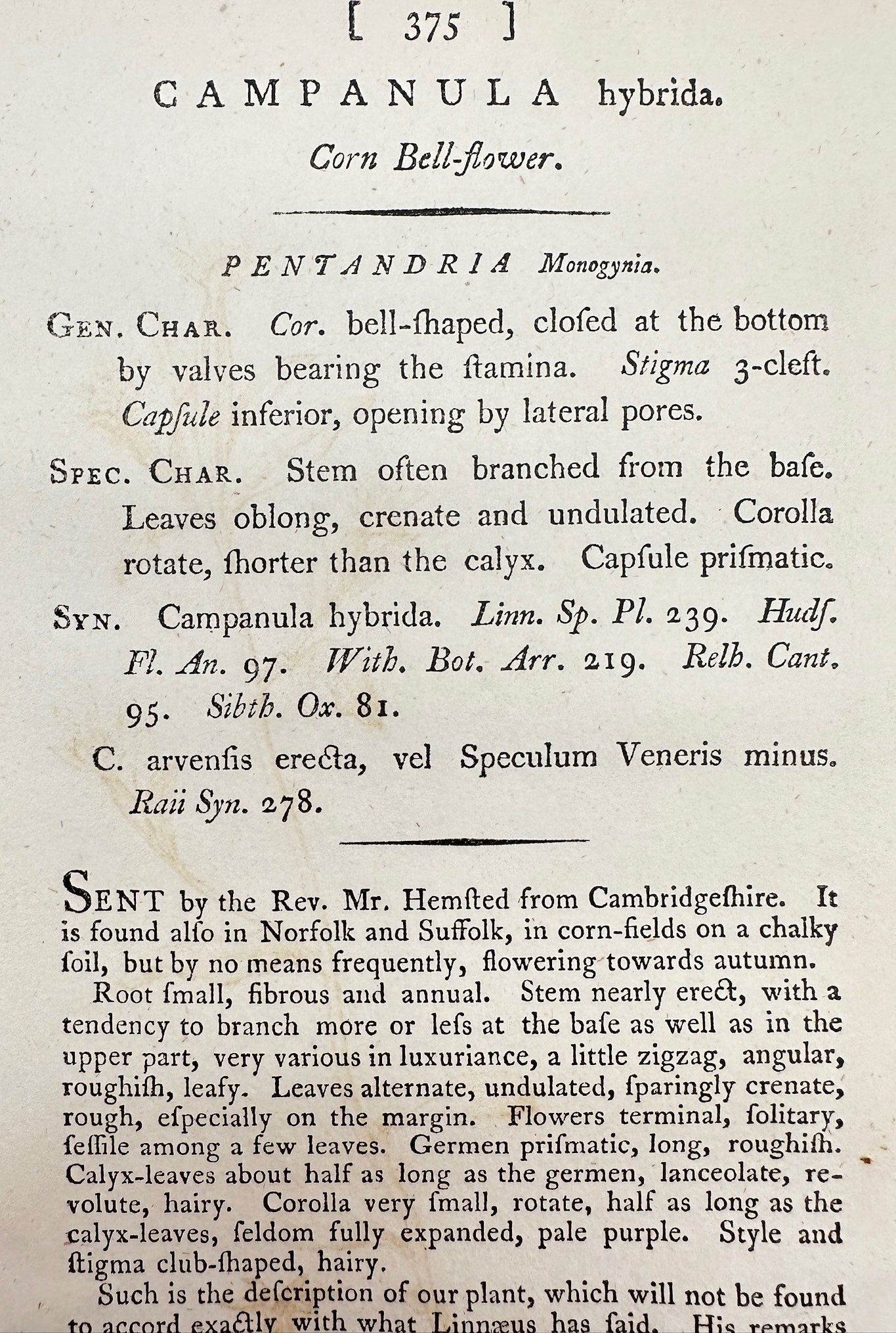 Antique Print - James Sowerby - Campanula Hybrida - Corn Bell-flower - F1