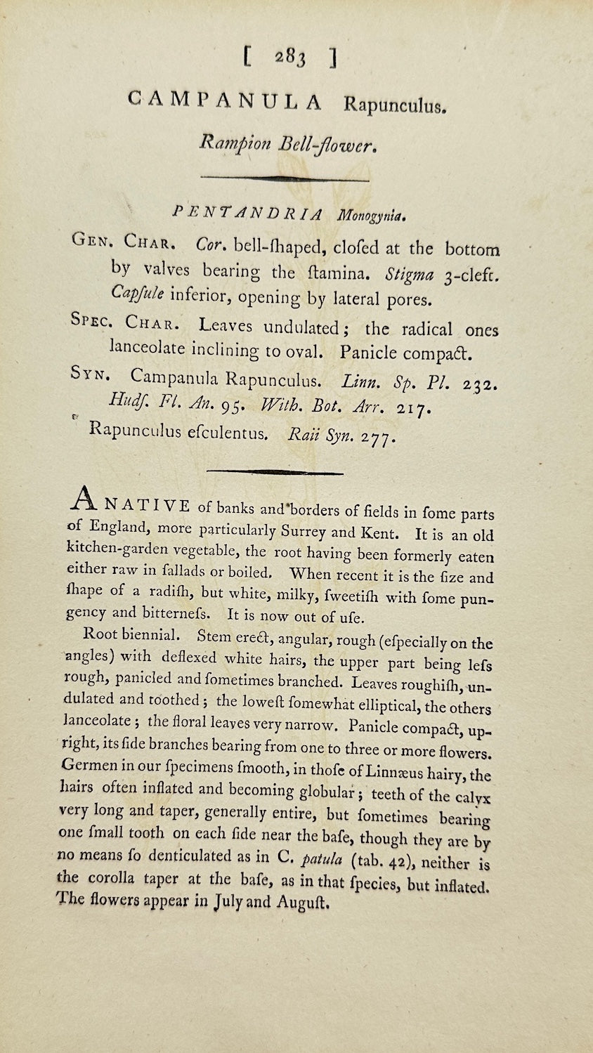 Antique Print - James Sowerby - Campanula Rapunculus - Rampion Bellflower - F1