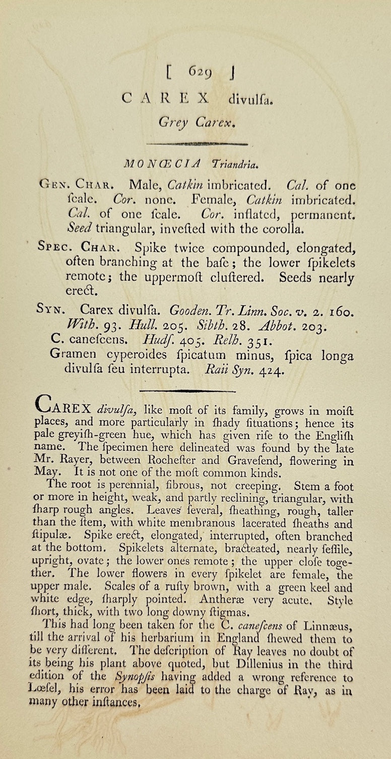 Antique Print - James Sowerby - Carex Divulsa - Broad-leaved Sedge - F1