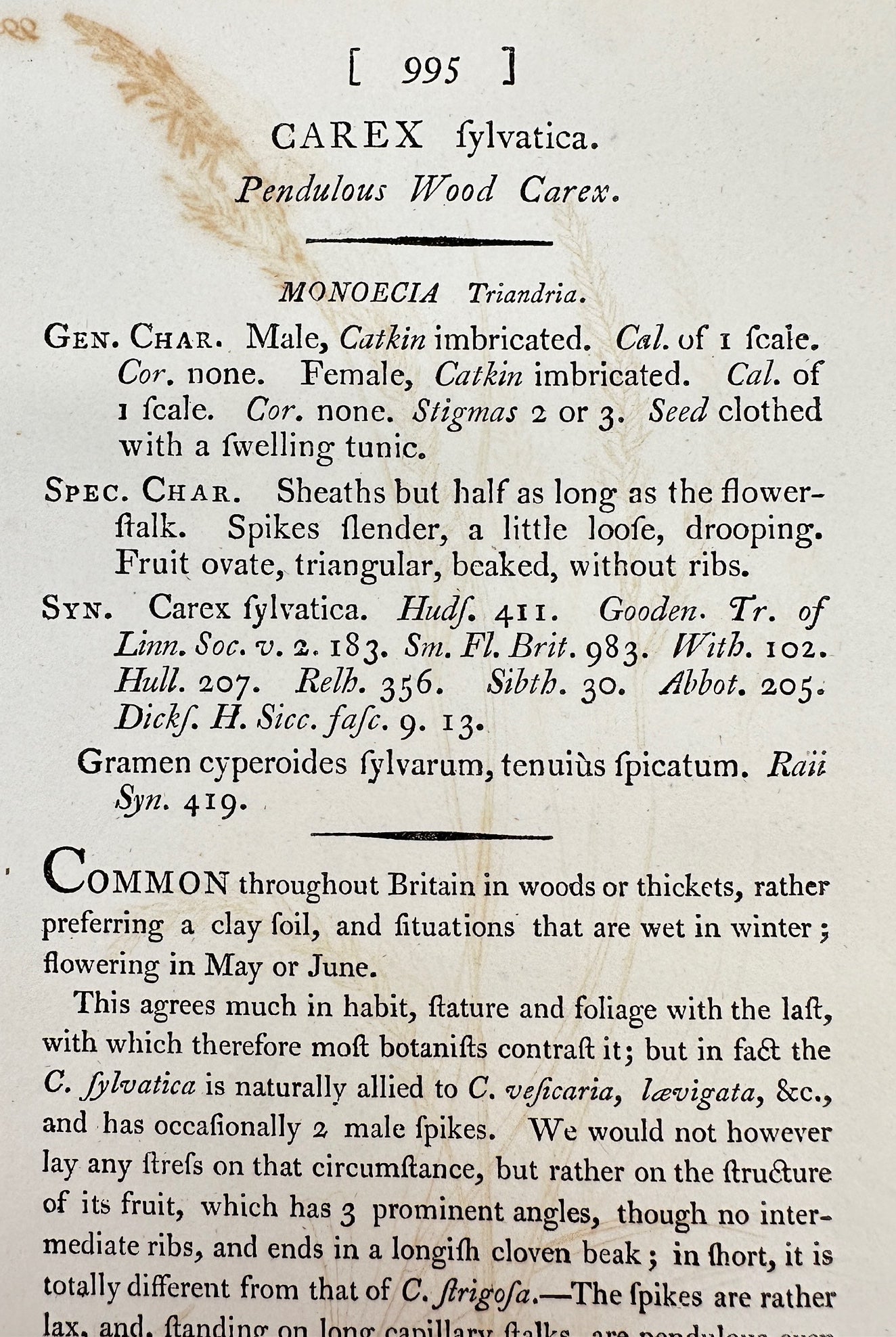 Antique Print - James Sowerby - Carex Fylvatica - Pendulous Wood Carex - F1