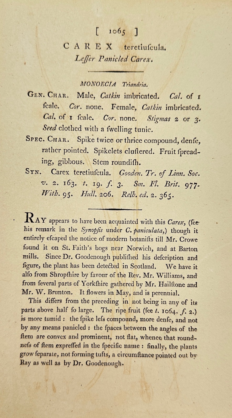 Antique Print - James Sowerby - Carex Teretiufcula - Leffer Panicled Carex - F1