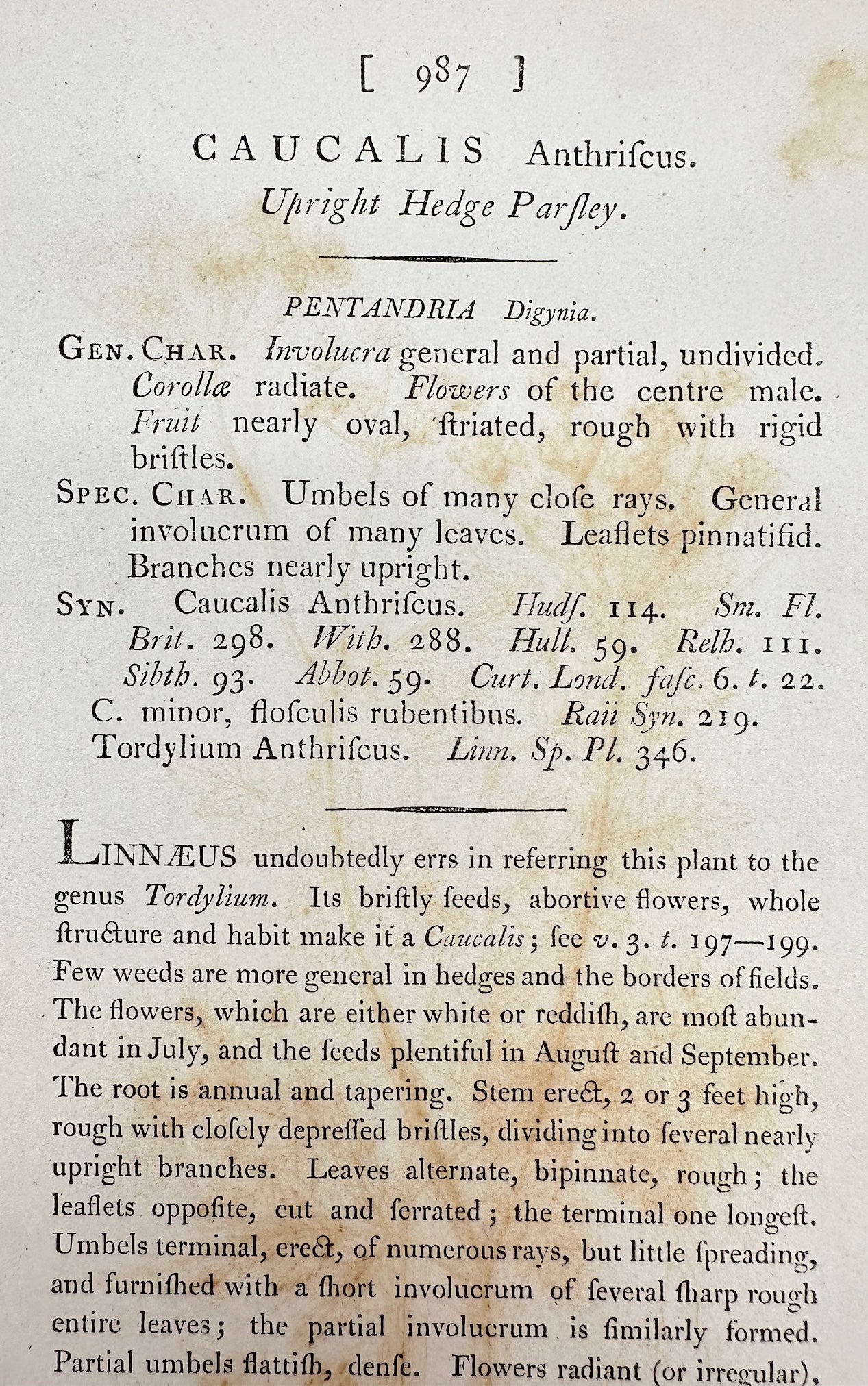 Antique Print - James Sowerby - Caucalis Anthrifcus - Upright Hedge Parsley - F1