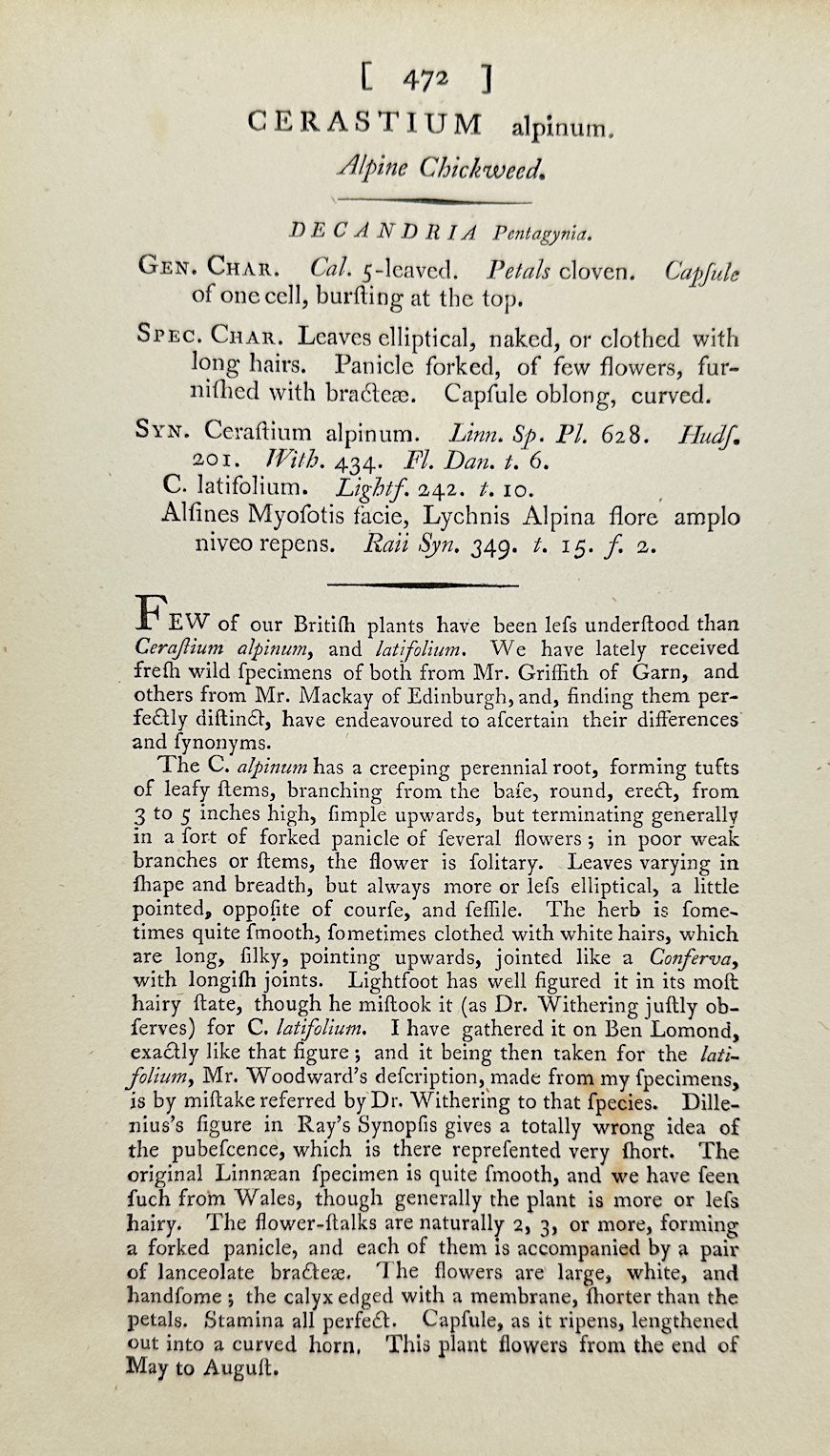Antique Print - James Sowerby - Cerastium Alpinum - Alpine Chickweed - F1