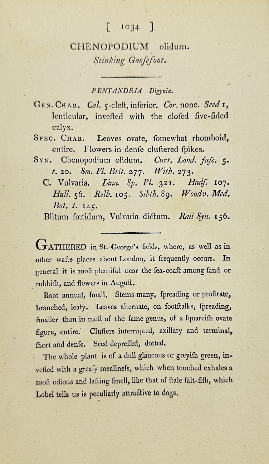 Antique Print - James Sowerby - Chenopodium Olidum - Stinking Goofefoot - F1