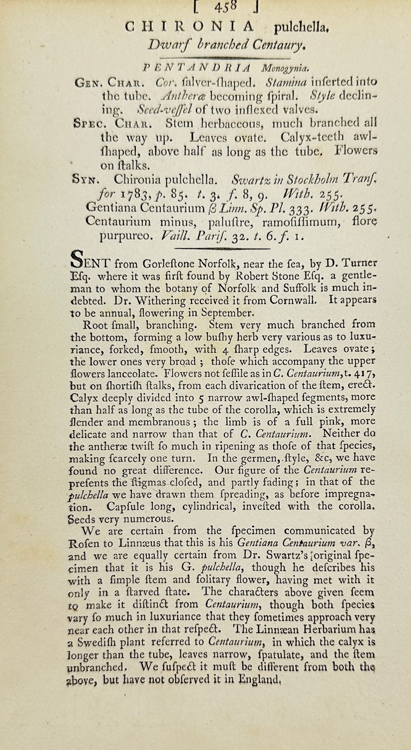 Antique Print - James Sowerby - Chironia Pulchella - Pretty Chironia - F1
