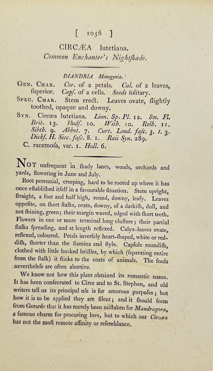 Antique Print - James Sowerby - Circaea Lutetiana - Enchanter's Nightshade - F1
