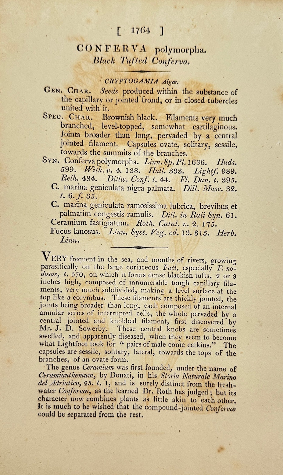 Antique Print - James Sowerby - Conferva Polymorpha - Variable Conferva - F1