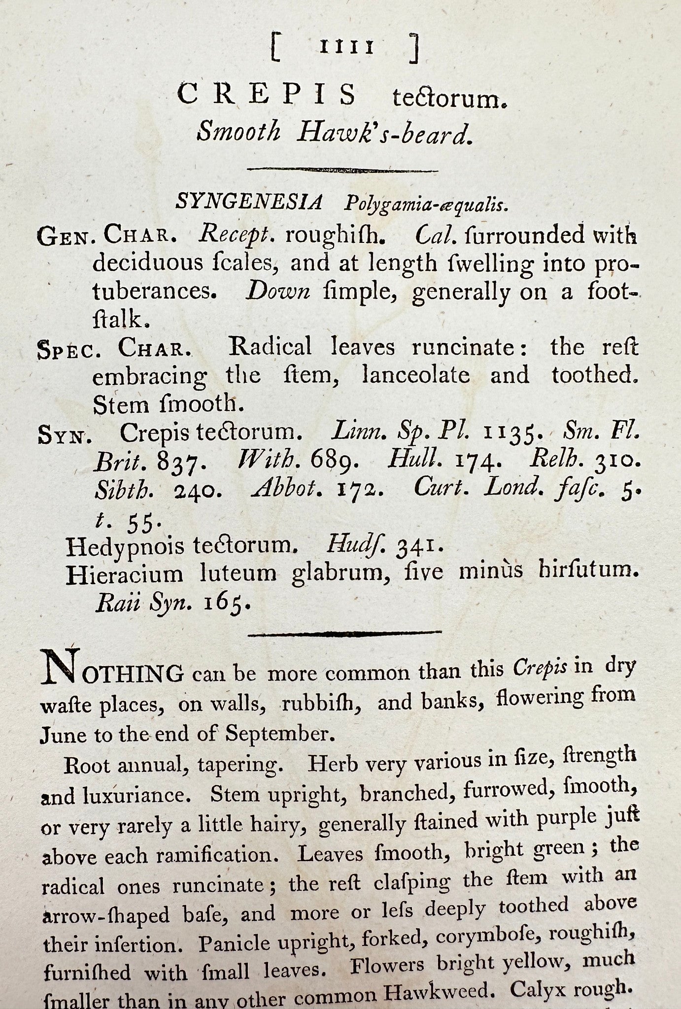 Antique Print - James Sowerby - Crepis Tectorum - Smooth Hawk's-beard - F1