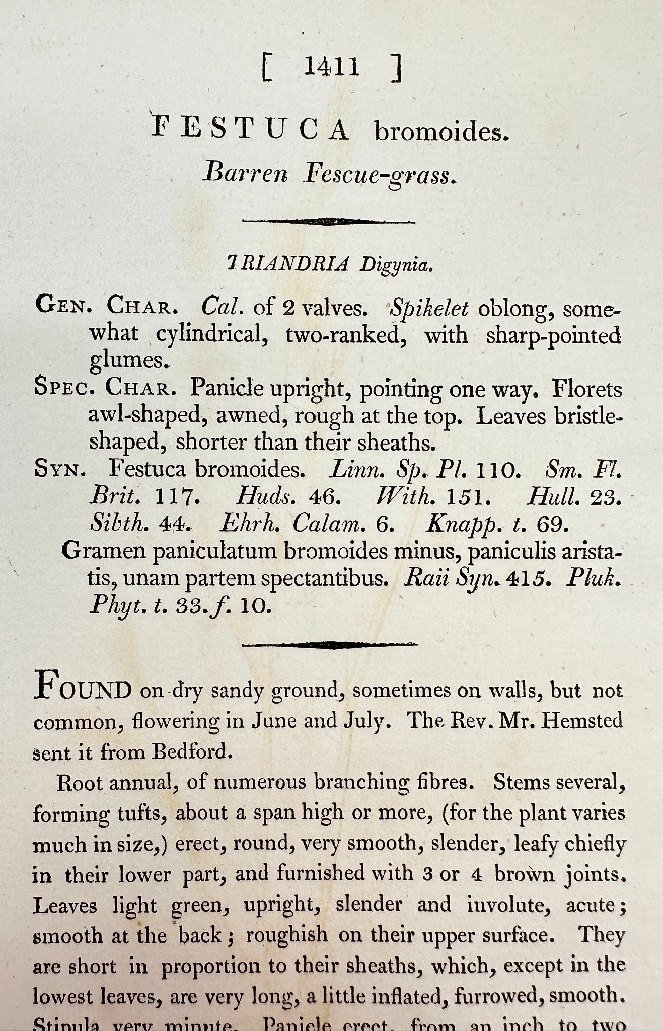 Antique Print - James Sowerby - Festuca Bromoides - Barren Fescue-grass - F1