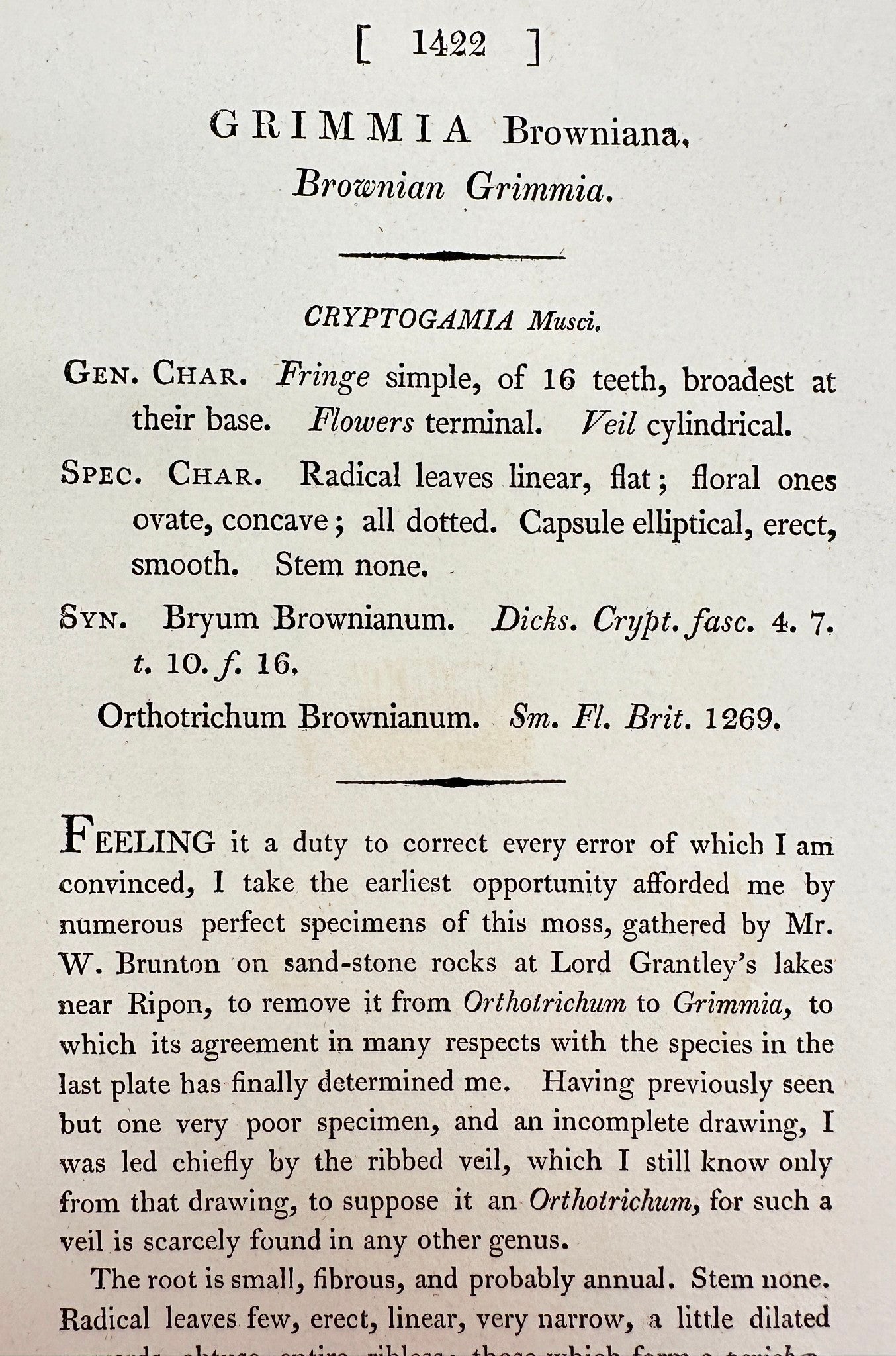 Antique Print - James Sowerby - Grimmia Browniana - Brownian Grimmia - F1