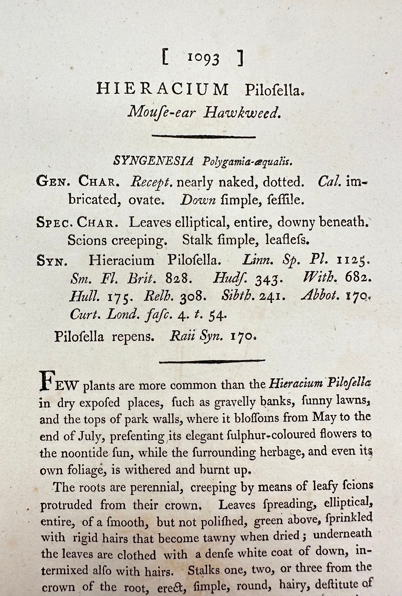 Antique Print - James Sowerby - Hieracium Pilosella - Mouse-ear Hawkweed - F1