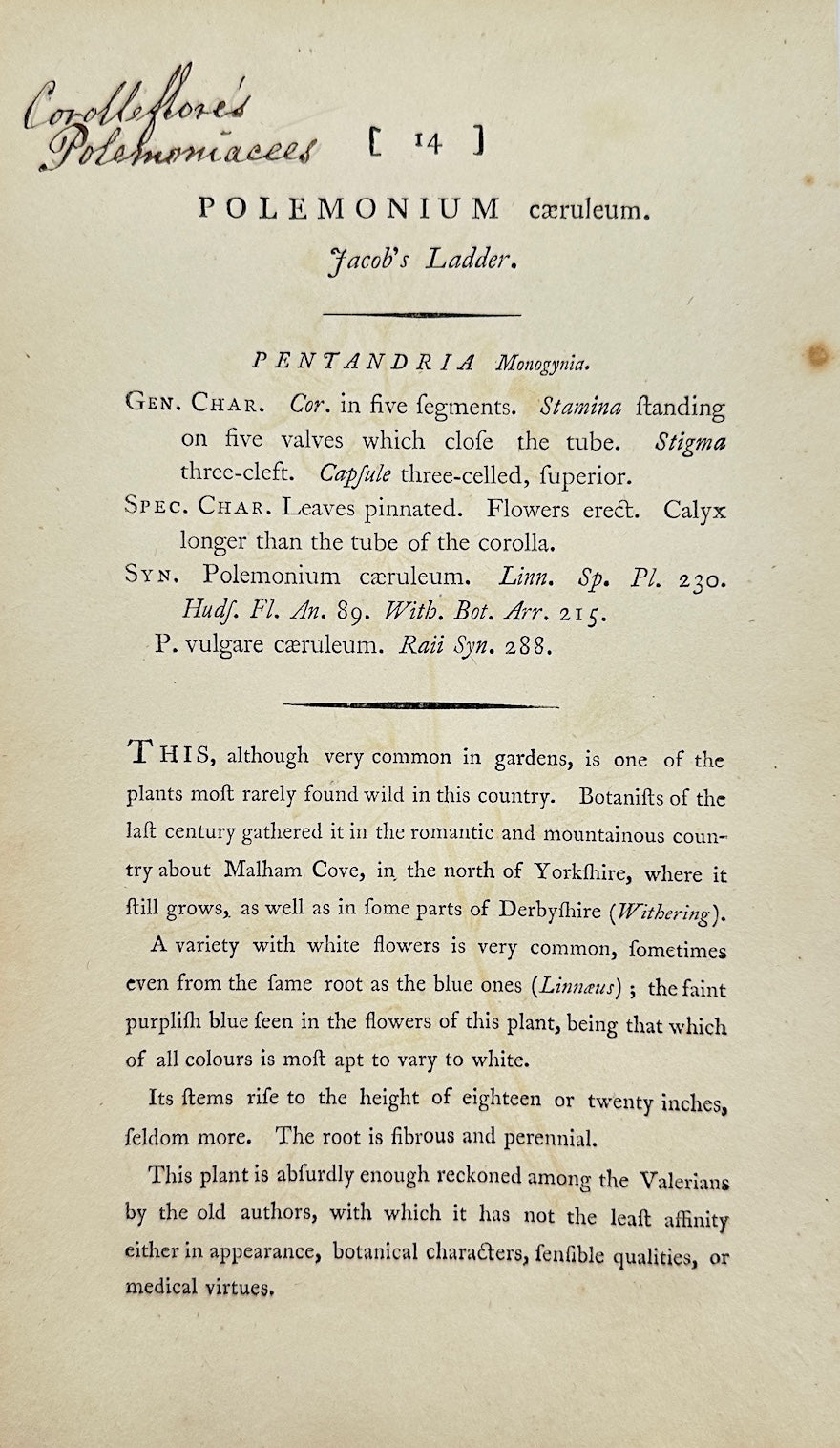 Antique Print - James Sowerby - Polemonium Caeruleum - Jacob's Ladder - F1