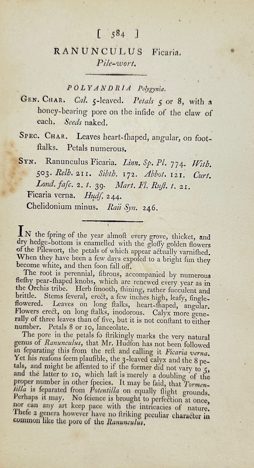 Antique Print - James Sowerby - Ranunculus Ficaria - Lesser Celandine - F1