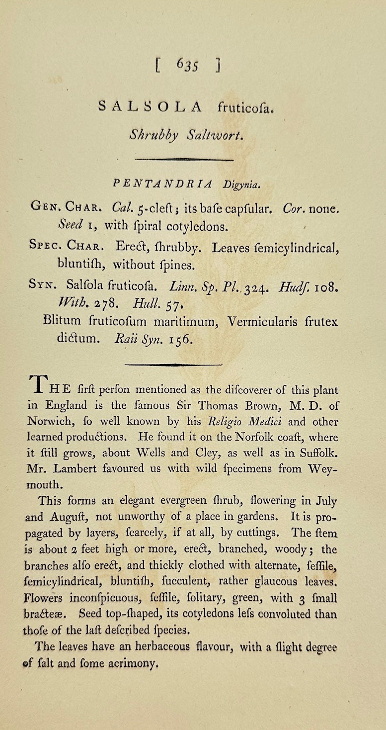 Antique Print - James Sowerby - Salsola Fruticosa - Bushy Saltwort - F1