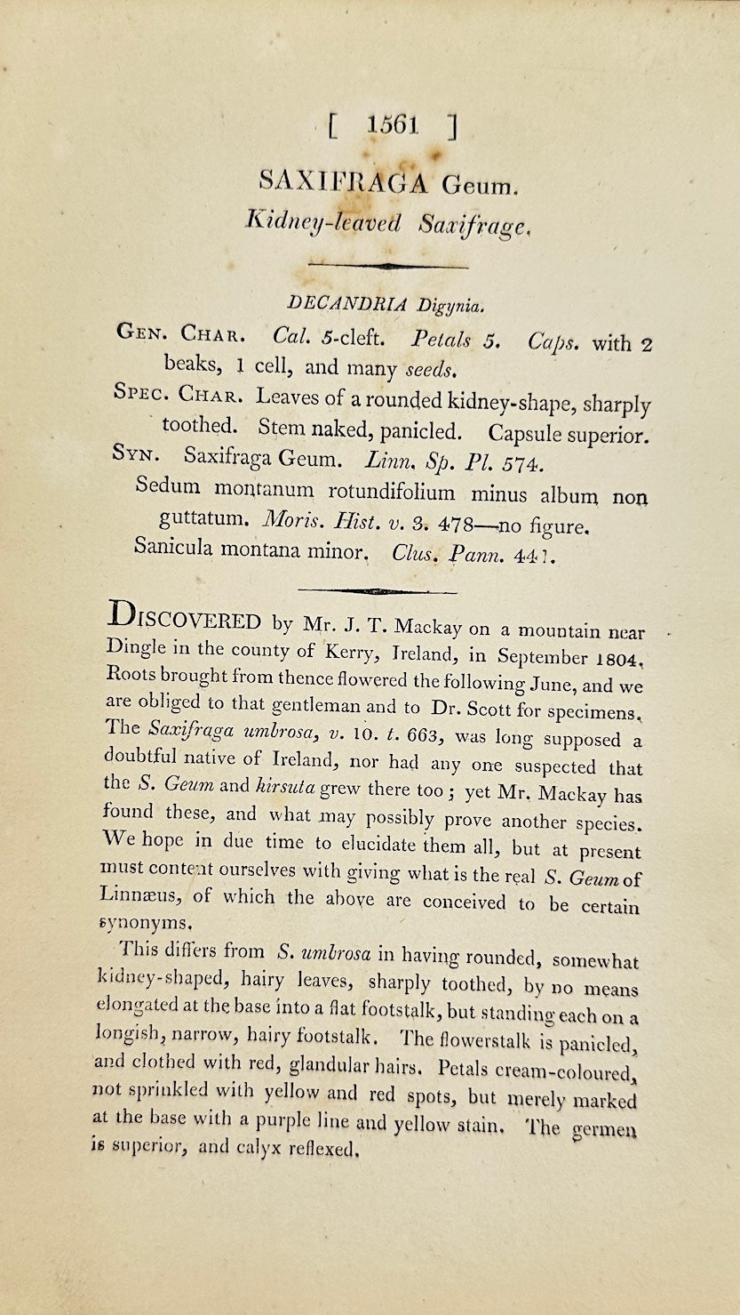 Antique Print - James Sowerby - Saxifraga Geum - Kidney-leaved Saxifrage - F1