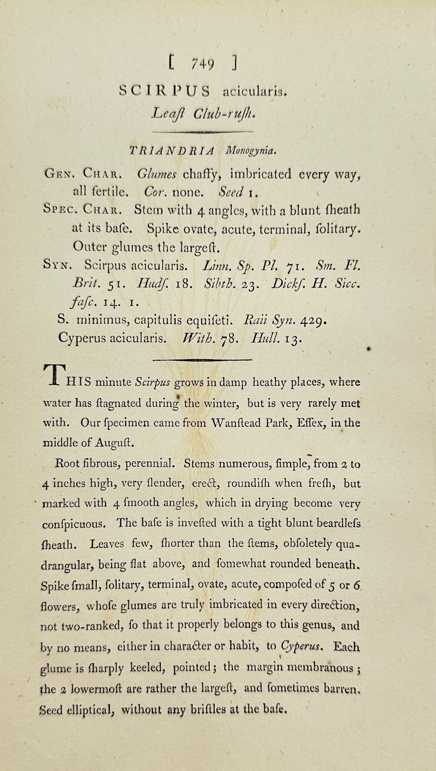 Antique Print - James Sowerby - Scirpus Acicularis - Needle Spike-rush - F1