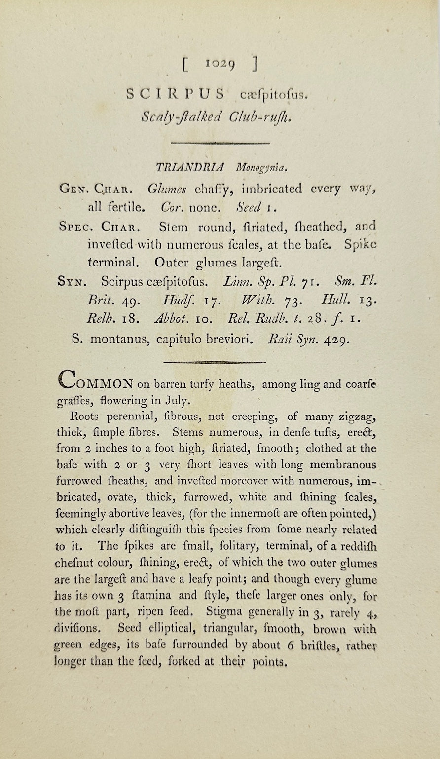 Antique Print - James Sowerby - Scirpus Caespitosus - Bunch Bulrush - F1